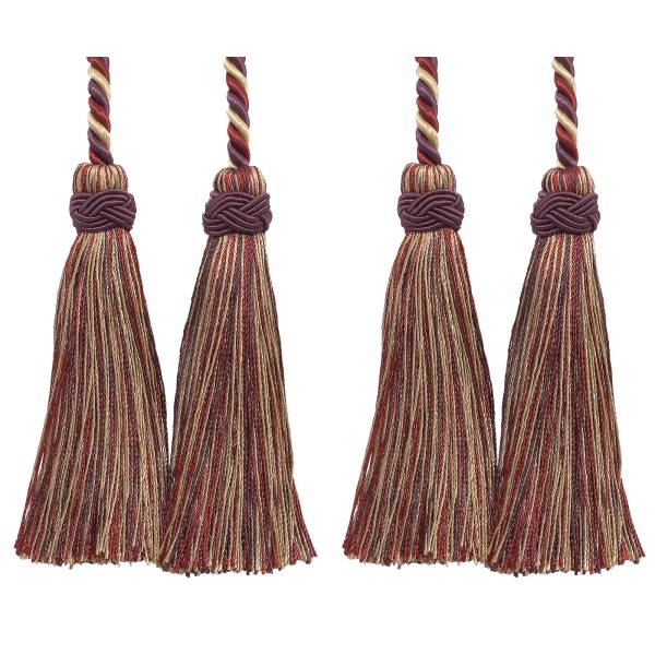 - Imperial Collection Double Tassel Curtain and Drapery Tieback / Holdback, 4" Tassel (10cm), 26" Spread (66cm) # ICT,, Cranberry Red #4466 (Dark Red, White Gold, Olive Green) Set of 2