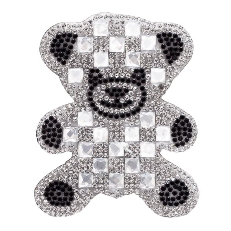 - 2 1/2" x 2 1/2" (6cm x 6cm) Iron-On Rhinestone Patch Teddy Bear Design # APPL04,, Classic Silver #SILV (Grey Silver) Sold Individually