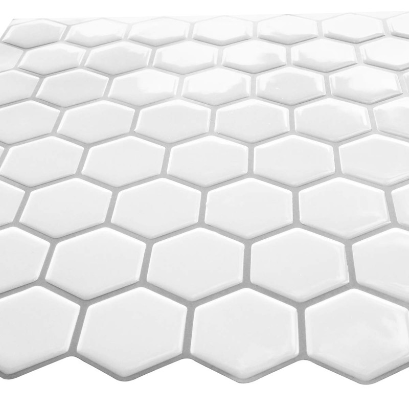 Decopus 3D Marble Tile Peel and Stick Backsplash (Hexagon) for Flooring Kitchen Bathroom Self Adhesive Vinyl Tile Honeycomb… (10pc/Pack, Hexagon -Mono White)
