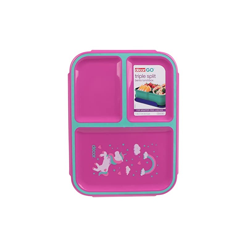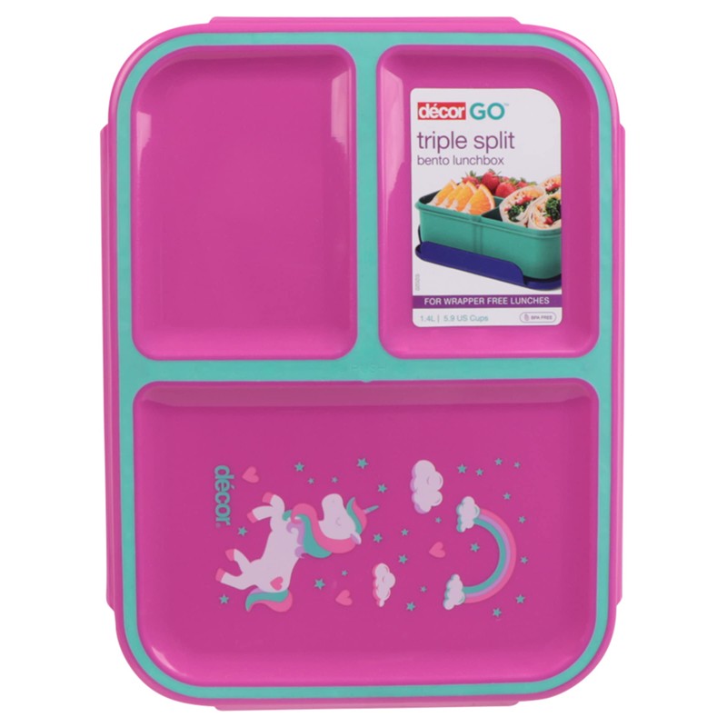 Décor Go Triple Split Design Bento Lunchbox, Assorted, 1.4 Litre Capacity