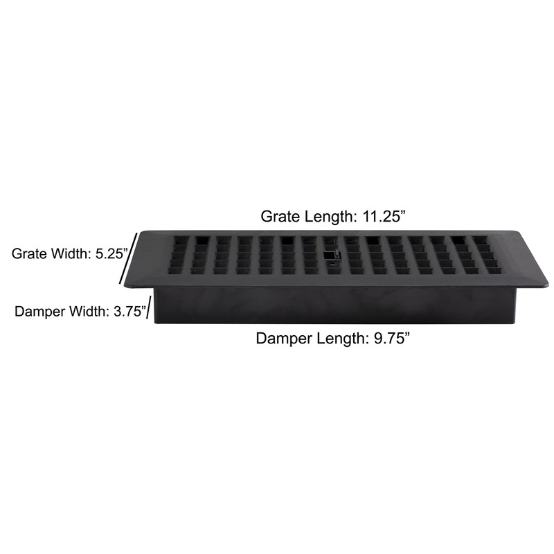 - Fits in a 4" x 10" floor duct opening; dimensions are for the opening in the floor - the damper will fit inside, the top portion will be slightly larger to sit on top of the floor
