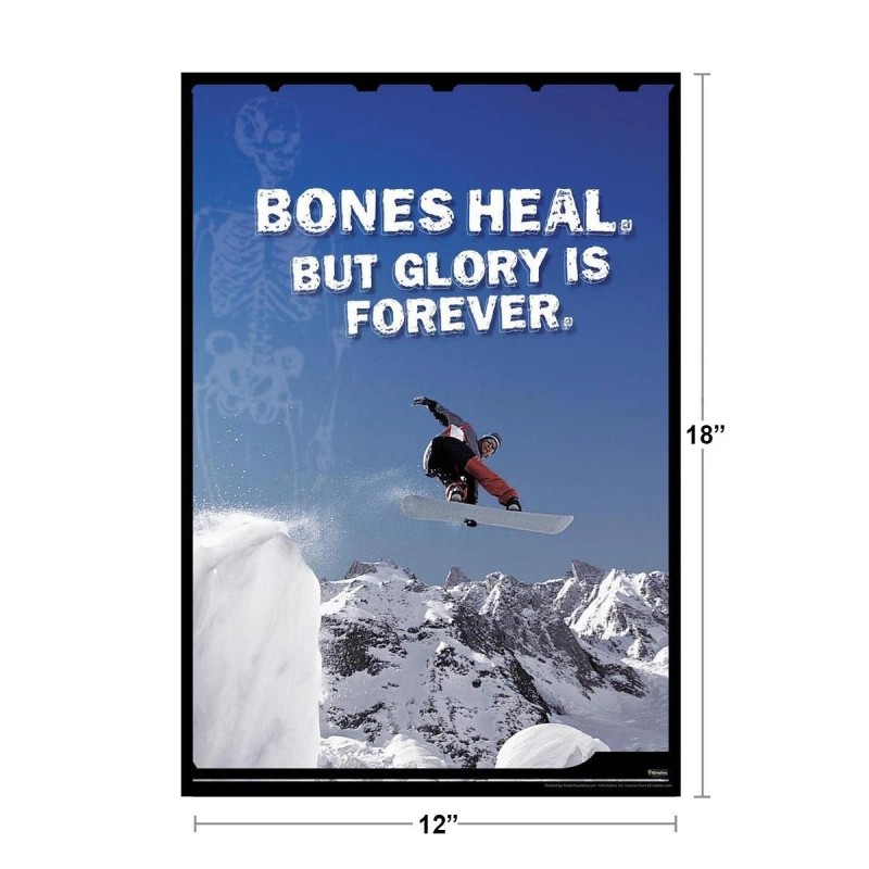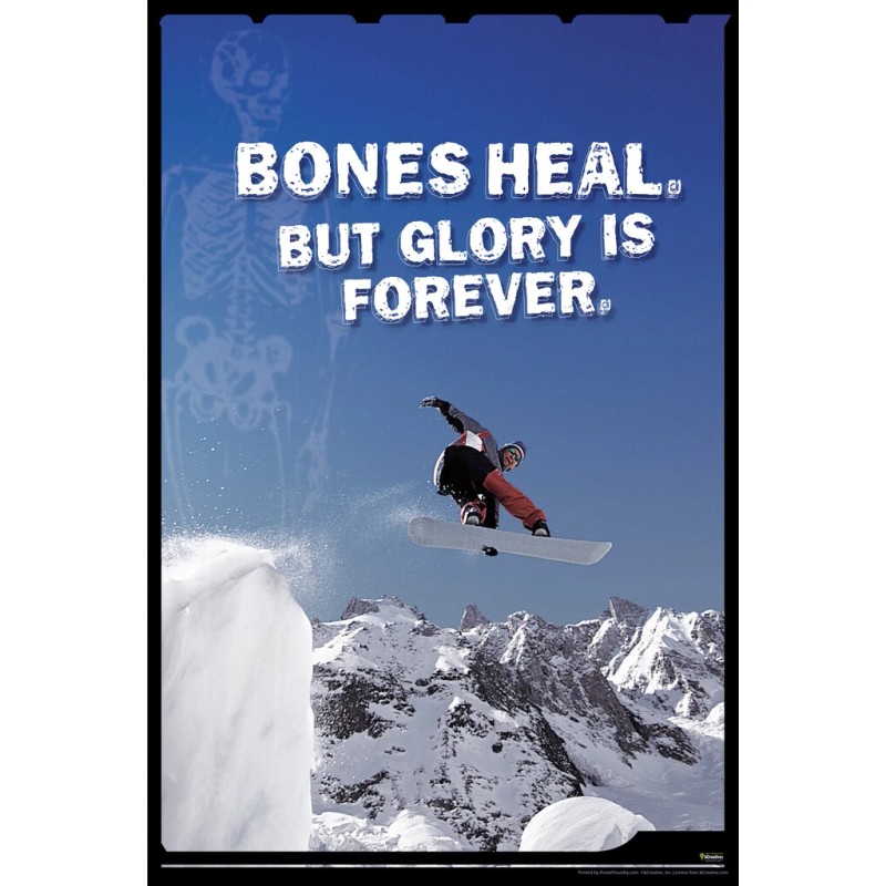 Bones Heal But Glory Is Forever Snowboard Funny Cool Wall Art Print Poster 12x18