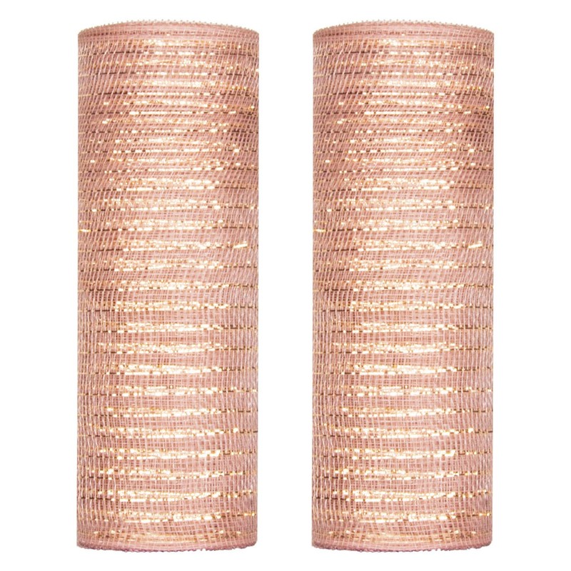Decor Mesh Poly Ribbons 10 Inch x 30 Feet Each Roll Metallic Foil Mesh Ribbon Christmas Tree Decorative Mesh Red and White Rolls for Xmas Wreaths (Rose Gold+Fine foil)