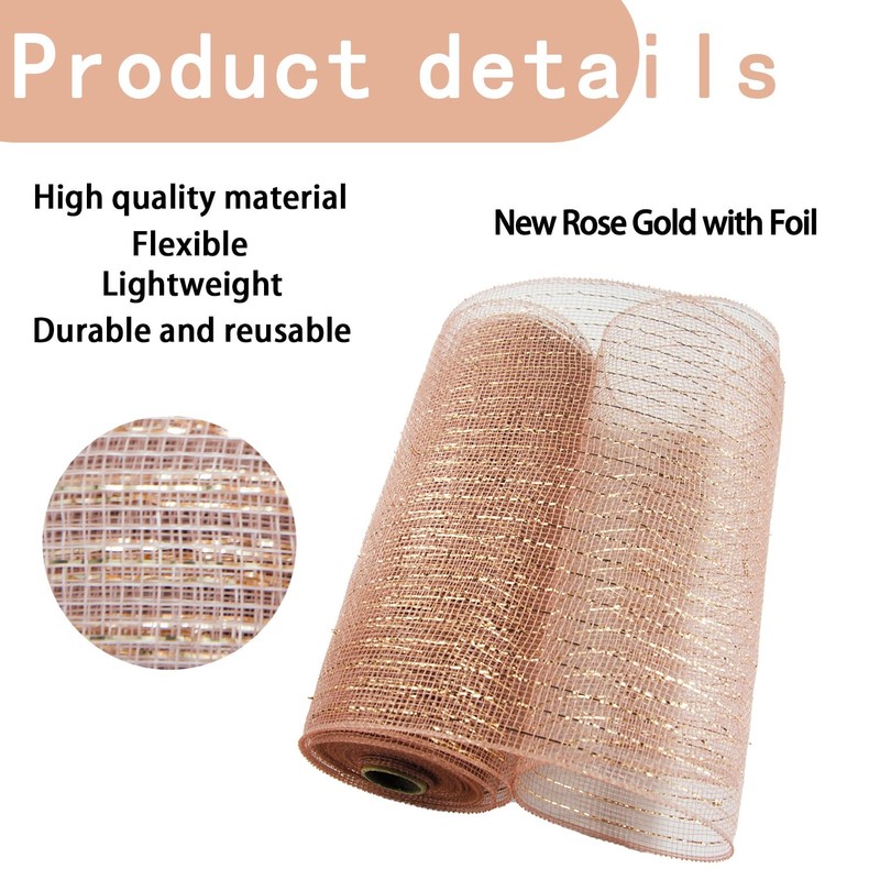 - 【Wide Applications】:Deco mesh is lightweight and flexible for decor items, gift wrap, gift baskets, floral designs, or for decorating gift boxes, bows, baskets, wreaths, garlands, DIY crafts to provide extra sparkle to anything you drape, wrap or tie.