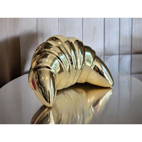 This new large ceramic gold croissant bakery figure is a stylish and decorative addition to any room in your home. The retro MCM design adds a touch of nostalgia to your decor, while the food and drink theme ties in perfectly with the whimsical design. Made from high-quality ceramic, this figure is sure to be a conversation starter and a unique statement piece in your living space. Perfect for adding a playful and vintage-inspired touch to your home décor.