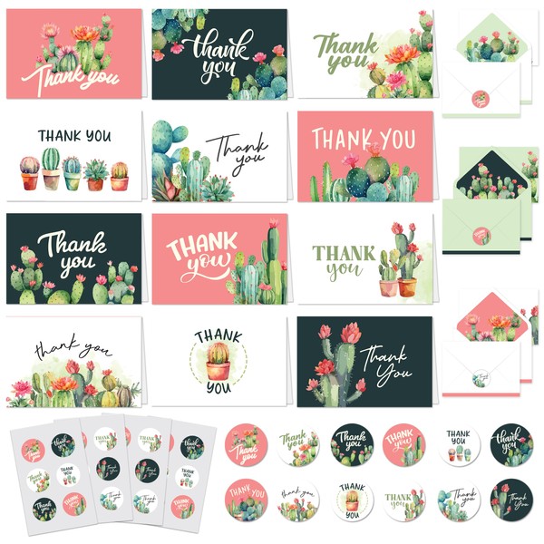 - GREAT FOR ALL OCCASIONS - You can't go wrong with thank you cards with envelopes cactus. The succulent thank you cards with envelopes make a thoughtful gift for all events. Get the thank you cards cactus for birthdays, baby showers, or any occasion.