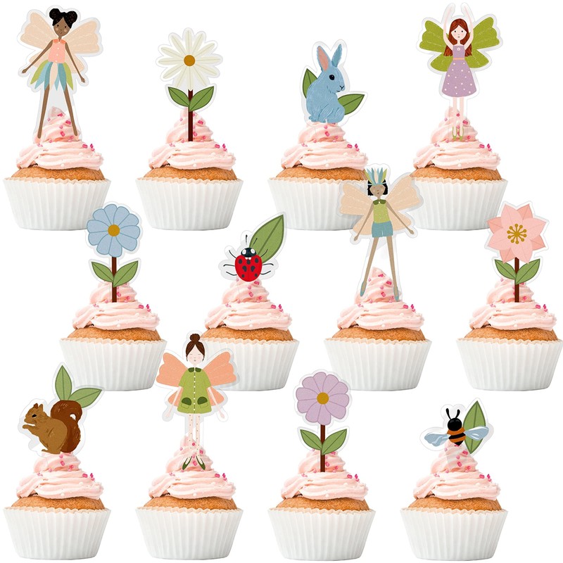 Decoración para cupcakes de hada del bosque – 24 unidades con temática de bosque para niñas, cumpleaños, baby shower, decoración de tartas para decoración de fiesta de té temática de hadas