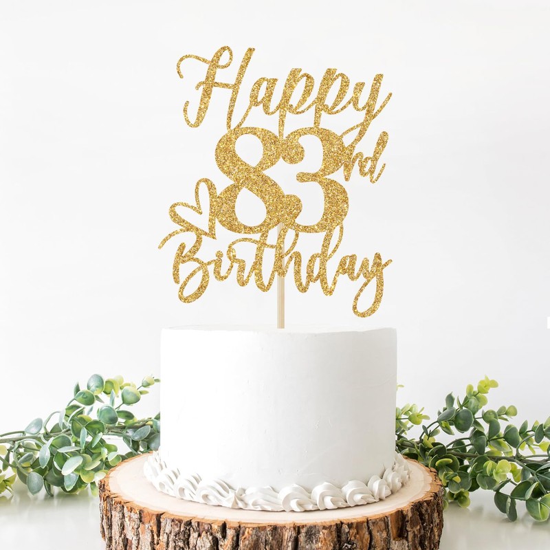 Decoración para tartas de feliz cumpleaños 83, decoraciones de cumpleaños 83 para hombres/mujeres, saludos a 83 años, suministros para fiesta de feliz cumpleaños 83, suministros de purpurina dorada