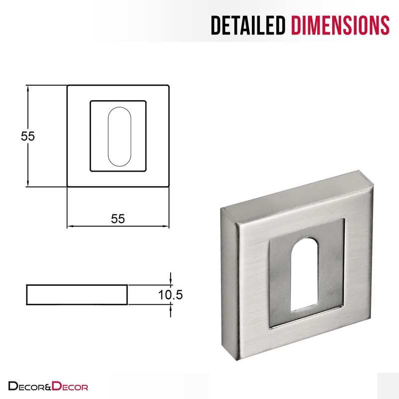 DecorAndDecor Square Escutcheon Thumb Turn Key Rose (Chrome Standard)
