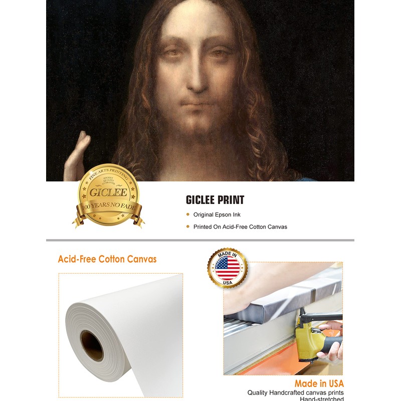 DECORARTS - Portrait Of Christ in Salvator Mundi by Leonardo Da Vinci. Giclee Prints on Acid Free Cotton Canvas, Stretched Canvas Wall Art. 12x18 in