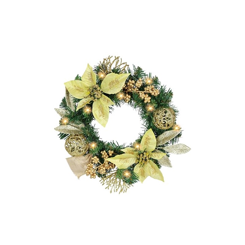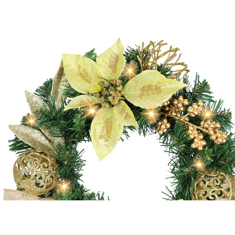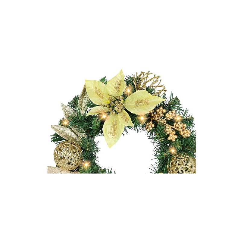 Decorated Christmas Wreath with LED Light Poinsettia Berries Fir Branches Christmas Tree Baubles 30 cm Decorative Wreath Advent Wreath Door Wreath Fir Wreath Flower Wreath Christmas Flower Christmas