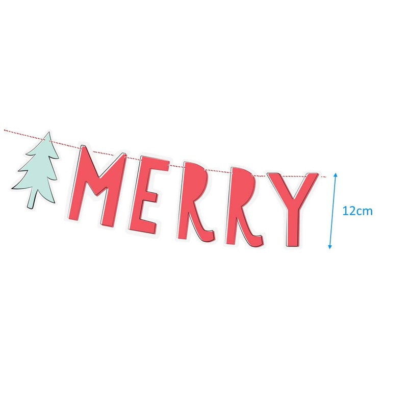 - The banner consists of red letters, Christmas tree motifs and 2 metres of red string for DIY crafts. Size of one letter: approx. 12 cm, total length: 120 cm