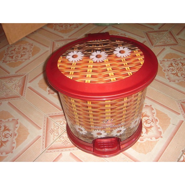 Decorative 10 L Oval Plastic Step Trash Can 13" Tall, Yellow