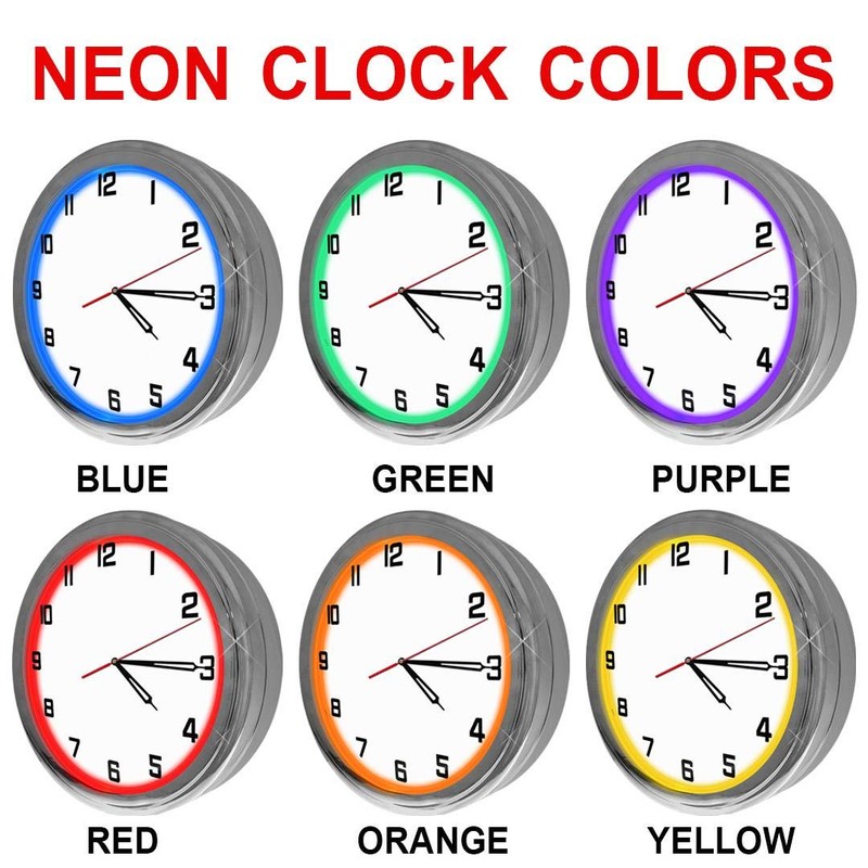 - High quality single neon garage clock. Clock contains one hand blown glass neon ring (additional color options shown in this listing)