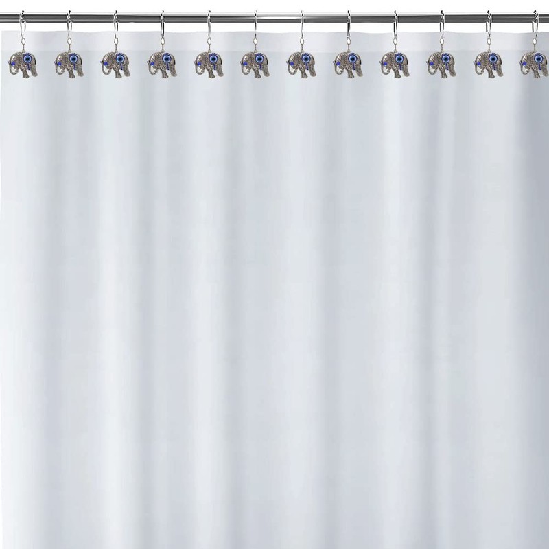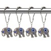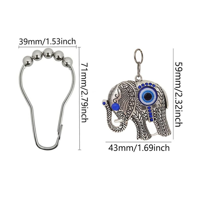 Decorative Elephant Shower Curtain Hooks Rings for Bathroom, Rust Proof Stainless Steel Curtain Ring Set of 12 with Unique Pendant Blue Eye Beads Elephant Theme Bathroom Decor Accessories