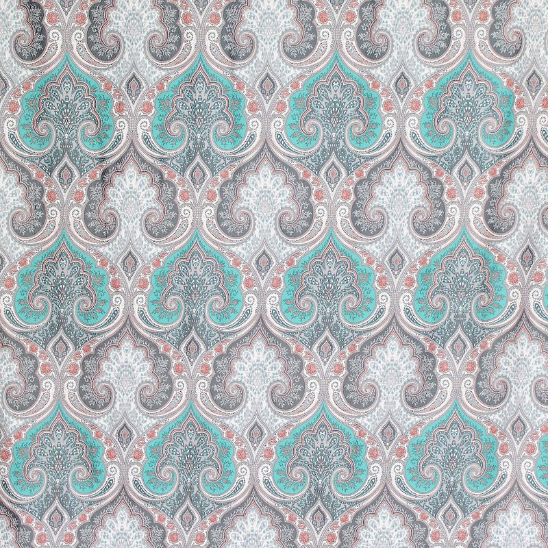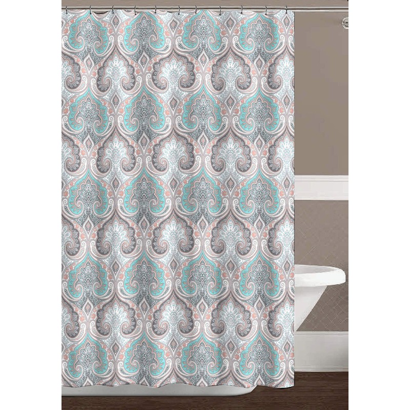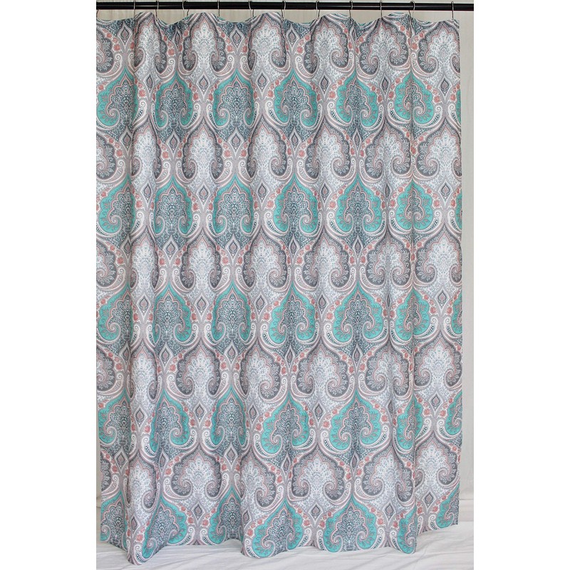 Decorative Fabric Shower Curtain: Teal Pink Grey Damask Design