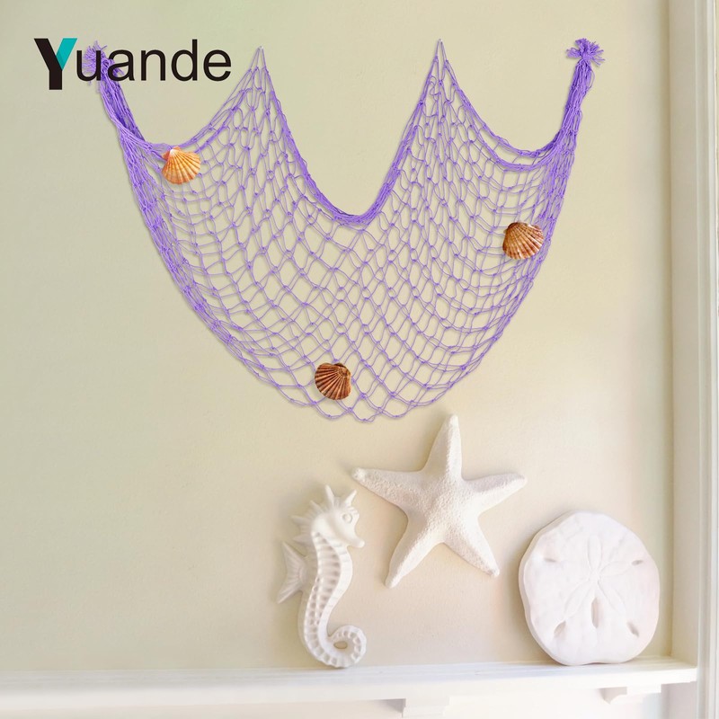 - 🏝️2 Pieces fish net - Fishnet decor(purple) measures 80x40 inches, thickness is 3mm,great for home, party. Larger fish net wall decor can be well decorated for your various nautical themed parties.mermaid parties, pirate parties, Hawaiian parties, birthday parties, baby showers.