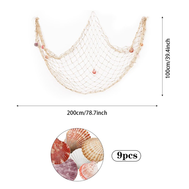- Package Content: You will get a fishing net charm with 9 pieces of marine shell decoration, the size of the net is approximately 200 x 100 cm / 78.74 x 39.37 inches.
