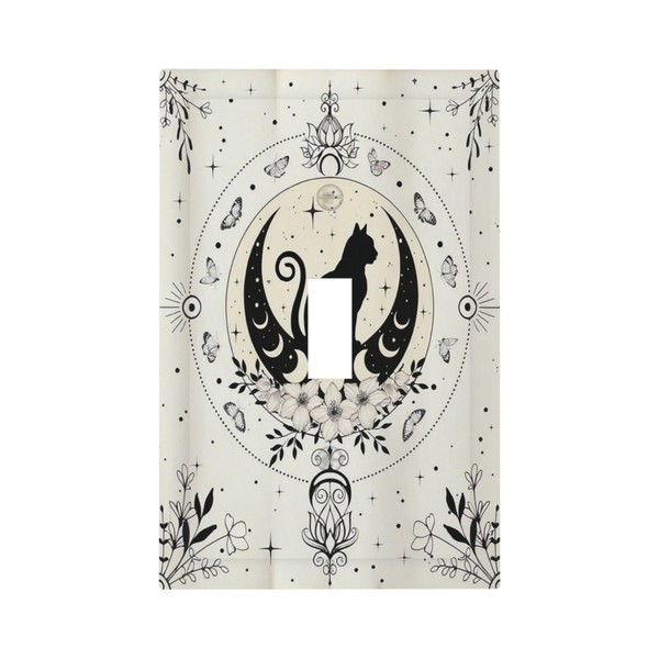 Decorative Light Switch Cover Boho Black Cat Gothic Moon Phase Flower Butterfly Wall Plate 1 Gang Single Toggle Device Electrical Faceplate Switchplates Decorator Outlet Wall Plate for Bedroom