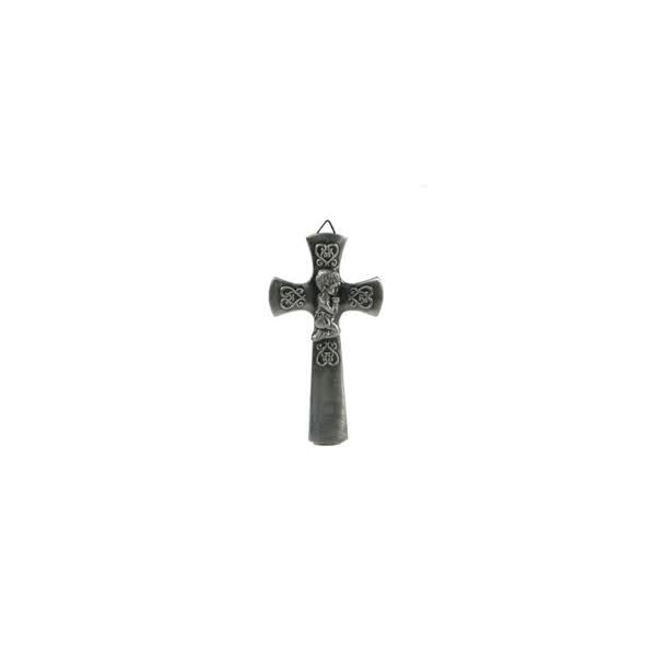- DESIGN: Beautifully crafted pewter wall cross featuring intricate Celtic-inspired patterns and a centred praying figure motif