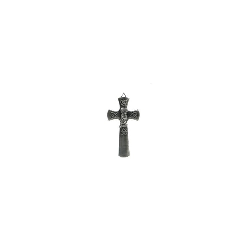 Decorative Pewter Wall Cross with Praying Design, Religious Home Decor