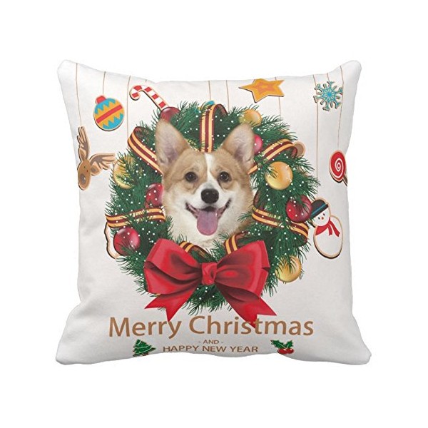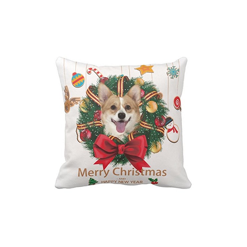 Decorbox MerryクリスマスLovely Corgiパターン18 x 18インチコットンポリエステルSquare Throw Pillow Ca...