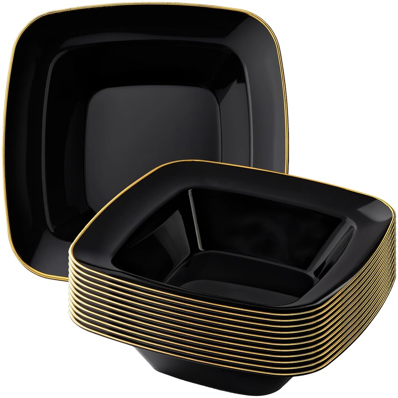 - STYLISH DESIGN: Impress your guests with our Contour Collection soup bowls, each bowl features a sophisticated black finish with a gold rim not only functional but also stylish perfect for upscale parties and celebrations.