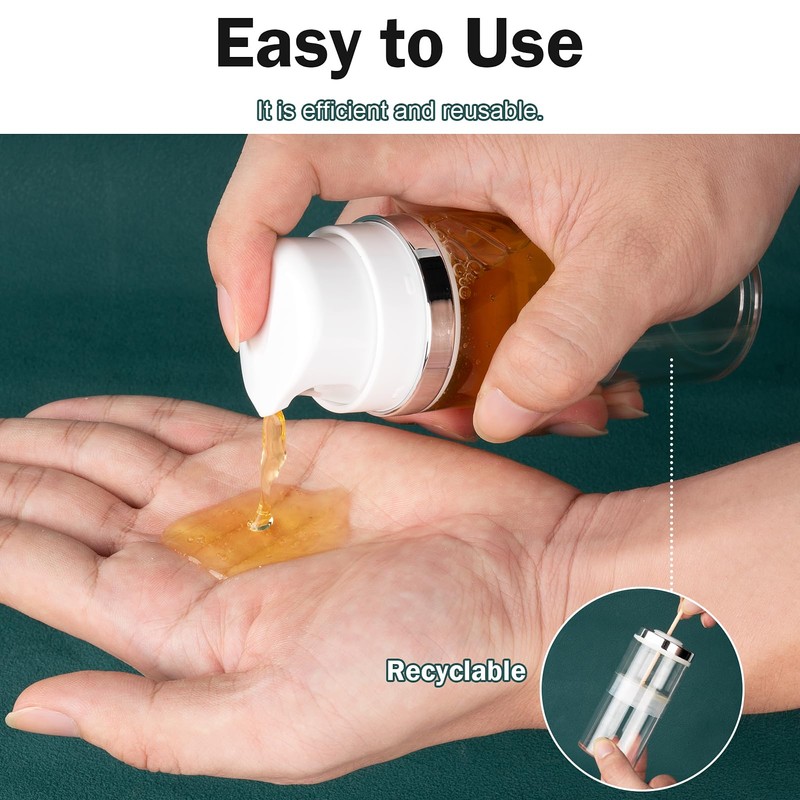 - Innovative Airless Design: Our airless pump bottles feature a strawless design, effectively preventing contamination and ensuring optimal sealing. This advanced technology keeps your moisturizer fresh and hydrated for longer.
