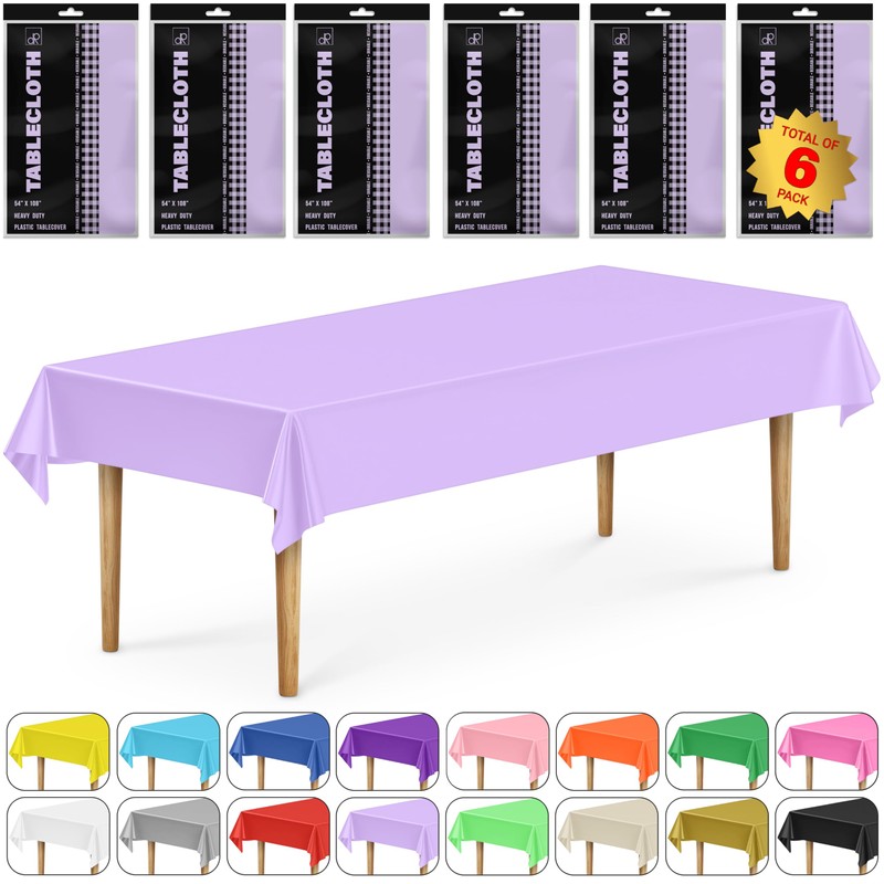 DecorRack 6 Pack Rectangular Tablecloths -BPA- Free Plastic, 54 x 108 inch, Dining Table Cover Cloth, Lavender (6 Pack)