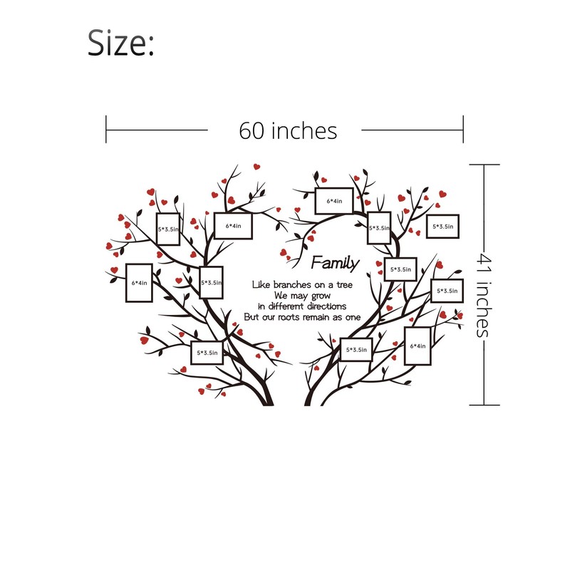 DecorSmart Love Family Tree Wall Decor Picture Frame Collage Removable 3D DIY Acrylic Wall Stickers for Living Room with Red Heart and Quote Family Like Branches on a Tree