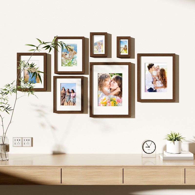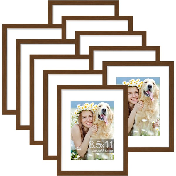 decorUhome 8.5x11 Picture Frame Set of 10, Display Photos 6x8 with Mat or 8.5x11 Unmatted for Picture Frames Collage Wall Decor, Brown