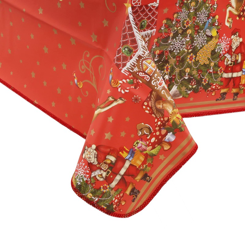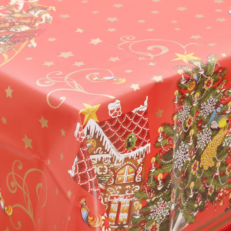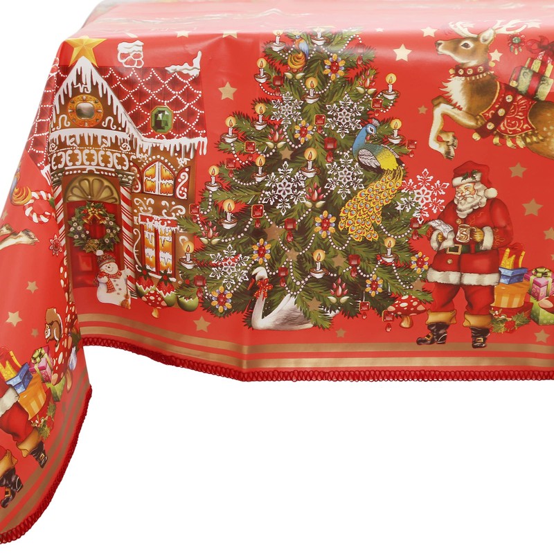 Decoser Heavy Duty Flannel Backed Vinyl Tablecloth with Flannel Backing Easy to Wipe-Clean Oilcloth Waterproof Plastic Rectangle 55x90 inch Red Table Cover for Christmas
