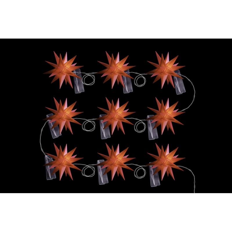 DecoTrend GmbH Sterntaler Star Chain, Christmas Star Chain, 9 Stars, 18 Points, Red, 8 cm, Indoor and Outdoor Use, LED, Power Plug, with Timer
