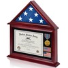 - 【Solid Wood Flag Case with HD Glass】The flag and certificate display case is hand made of solid wood, anti-fade mahogany finish, HD scratch resistant glass, velvet lining, sturdy hook and stable bottom. Honor and pride deserve the best materials and finish craft