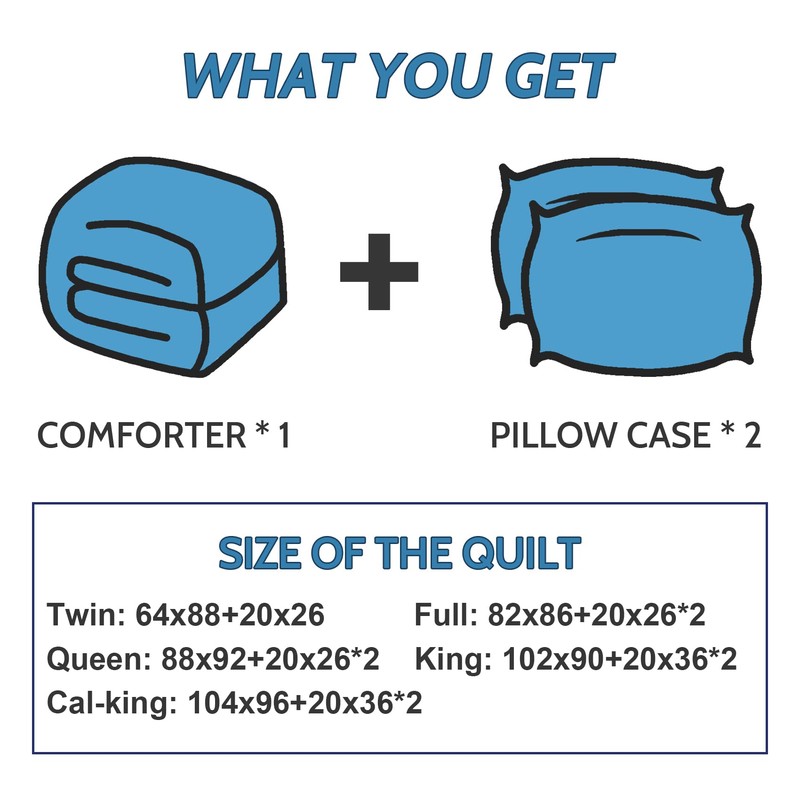 - WHAT YOU CAN GET: Each set comes with comforter and one or two matching pillowcase(s). If you have any problems, our 24h customer service team will work with you to make it Worry-free.