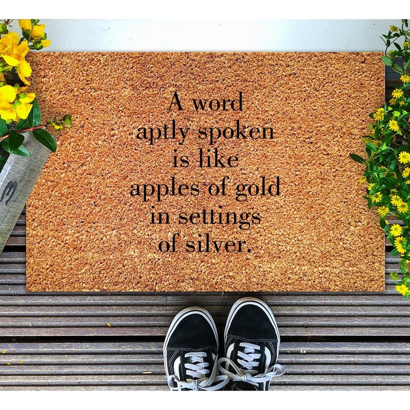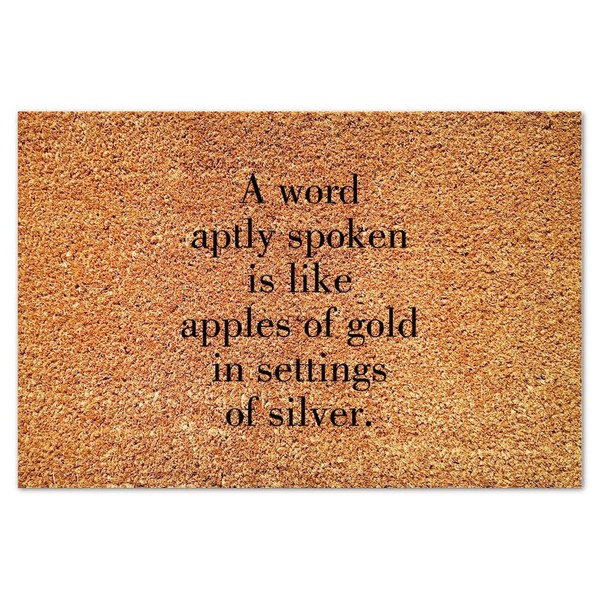 DecStic A Word Aptly Spoken is Like Apples of Gold Coir Mat Doormat Quotes Saying Rustic Weather Resistant Non Slip Mat for Outside Home High Traffic Area 24x36in