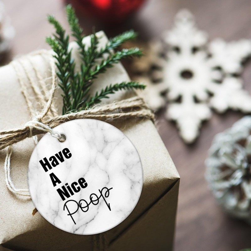 DecStic Christmas Ceramic Ornaments Have A Nice Poop Christmas Porcelain Ornament Funny Positive Motivational Christmas Memory Keepsake Ornament for Family Friends Parents 3 in