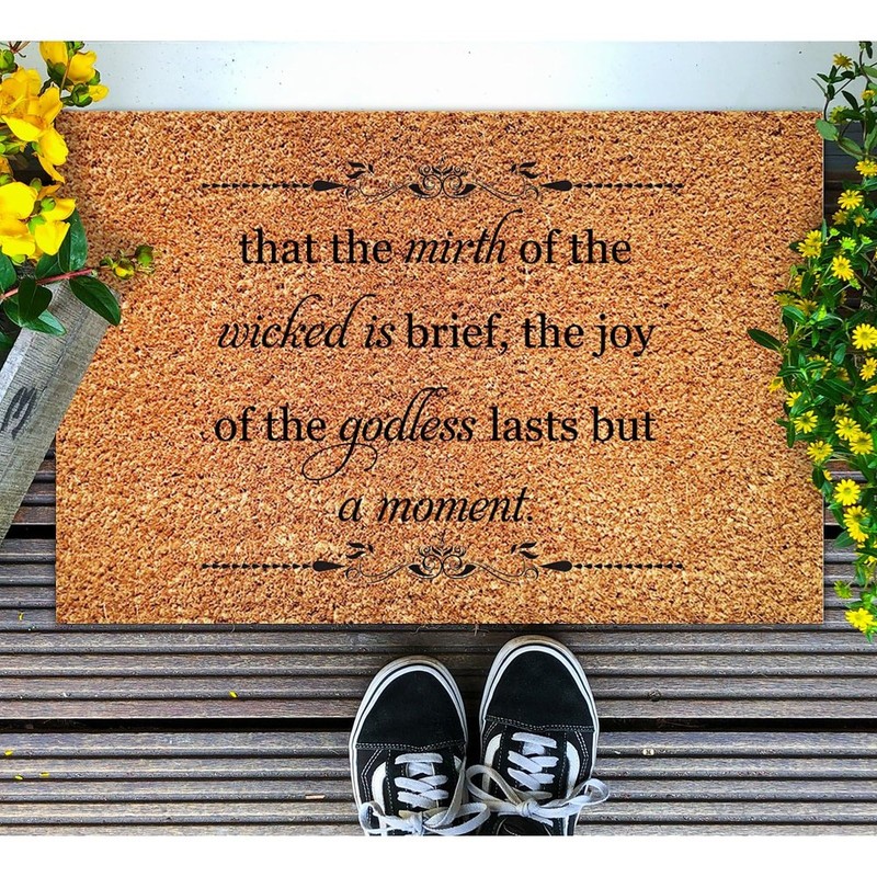DecStic That The Mirth of The Wicked is Brief Coir Doormat Doormats Christian Scripture Rustic Weather Resistant Non Slip Mat for Indoor Outdoor Porch Home Entryway 16x24in