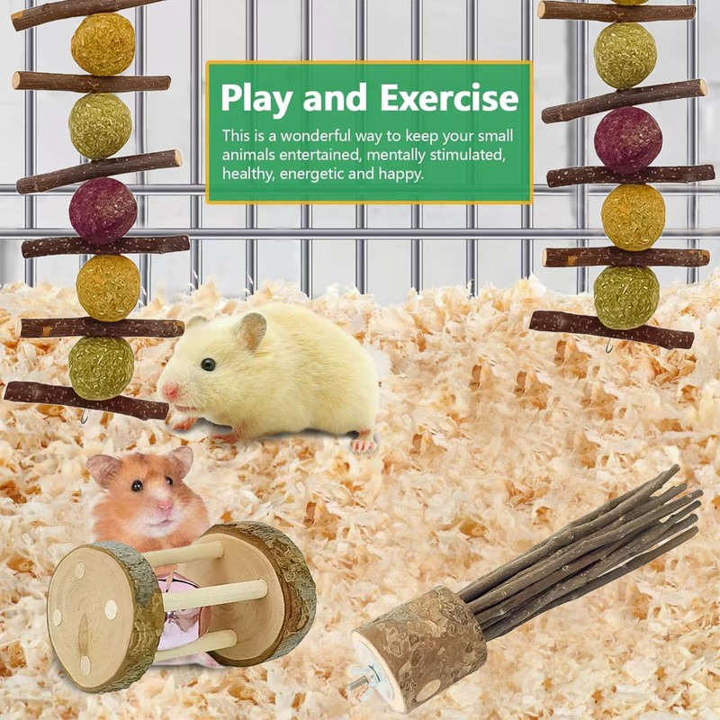 - 3 Distinct Chew Toys: Your adorable pet will get a lot from this toy set! With apple stick grass ball string, tree branch stick, and apple wood bell small roller. Watching them learn and explore will be a joy!