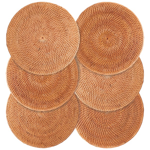 Decvel 6-Pack Rattan Placemats - 13-inch Round Placemats (Honey Brown) - Woven Place Mats, Round Table Mats - Wicker Chargers for Dinner Plates, Plate Chargers Boho - Rattan Decor, Kitchen Table Decor
