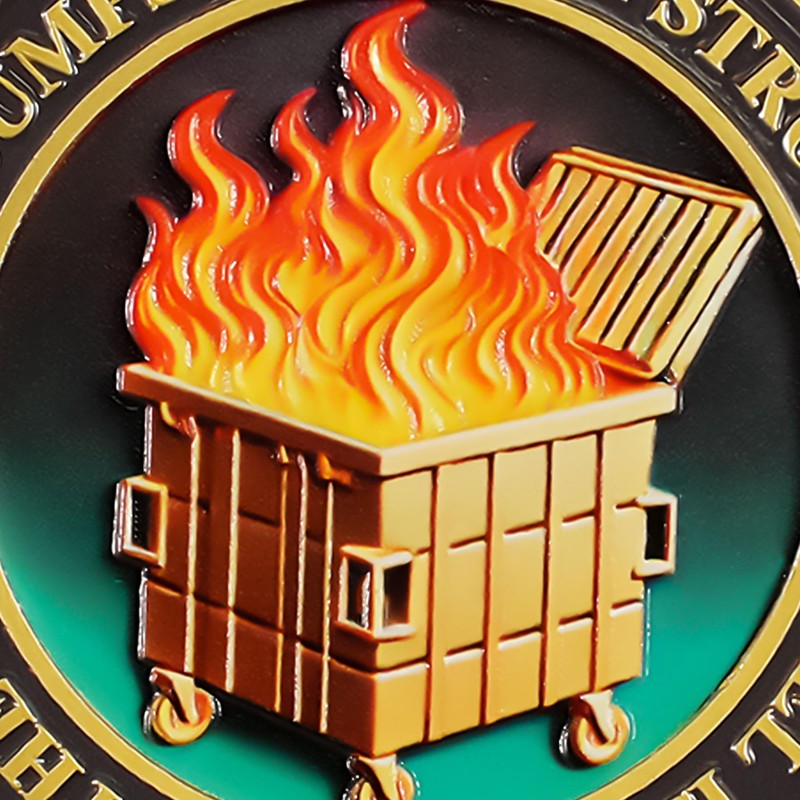 deDecoml Dumpster Fire Challenge Coin - The Strong Steel is Forged in The Fire of Chaos A Symbol of Resilience and Humor