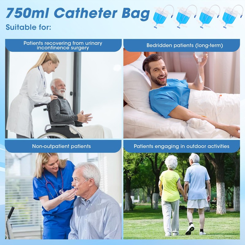 - 5-Pack Catheter Bags: Sterile 750ml/cc catheter leg bag with 14 inch thick drainage tube,each drainage bag is individually sealed to ensure cleanliness and ease of storage, making it easy to carry