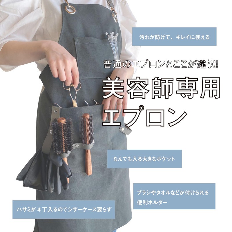 In addition to 5 essential accessories for salon work such as scissor sack, the back of the apron has a zipper to remove trash in your pocket.