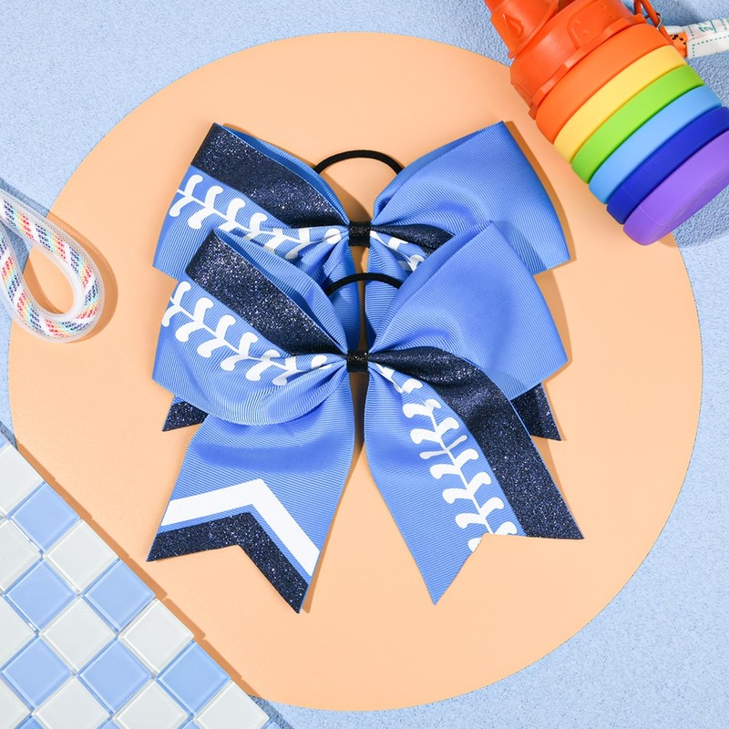 - Softball Cheer Bows - Our cheer bows feature distinctive softball stripe prints, available in multiple colors for you to choose from. All our cheer bows are attached to high-quality hair elastics. Elevate your game day look with these stunning softball accessories