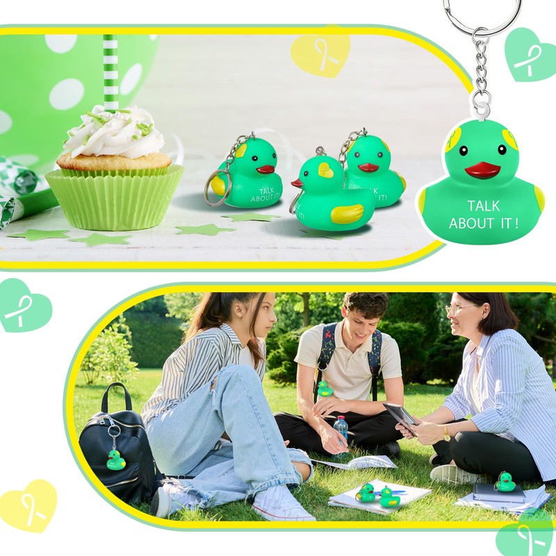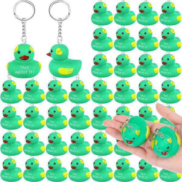 Deekin 48 Pcs Mental Health Awareness Rubber Duck Keychains Mental Health Green Ribbon Ducky Chains Bulk Gifts