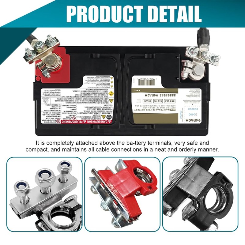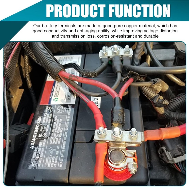 - Features:The battery terminal kit adopts a three-bolt design, which can help you connect multiple wires to a single terminal to enhance the efficiency of use. Our battery connectors have smooth edges that won't hurt your hands, and are small enough for you to carry around and use