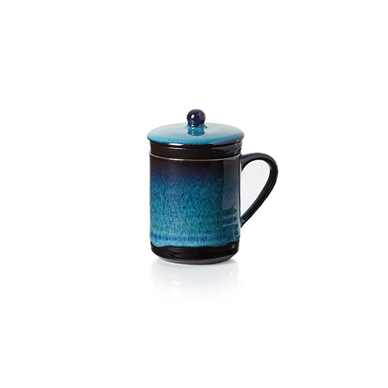 - This tea infuser mug is both bold and serene with it's beautiful deep blue coloring. Glazed in colors that reflect the shores and depths of the lakes of Vietnam, this ceramic tea infuser mug offers a bold and beautiful look to any kitchen. Made in Bat Trang village, famous for its centuries-old tradition of creating fine ceramics.