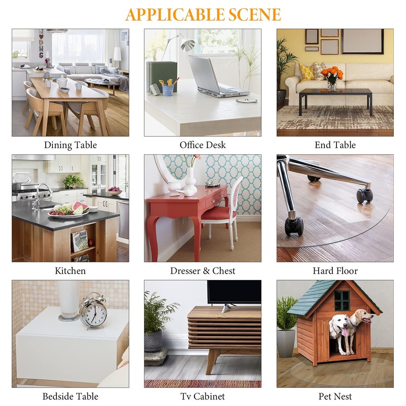 - ✅[Multi-scene Use]: Clear table mats are ideal for dining tables, wooden tables, glass, marble, stainless steel countertops, desks, writing desks, coffee tables, coffee tables, TV stools, dressers and wardrobes, bedside tables, Christmas, countertops and hard floors.