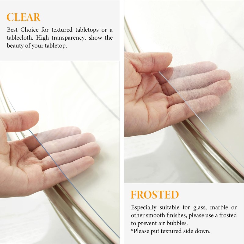 - Thick & Heavy Duty: The 1.5mm thick clear table cloth cover is heavy enough to stay in place. The 2.0mm thick clear table mat is recommended for kitchen and dining room table which has better heat resistant, maximum to 176°F / 80°C.