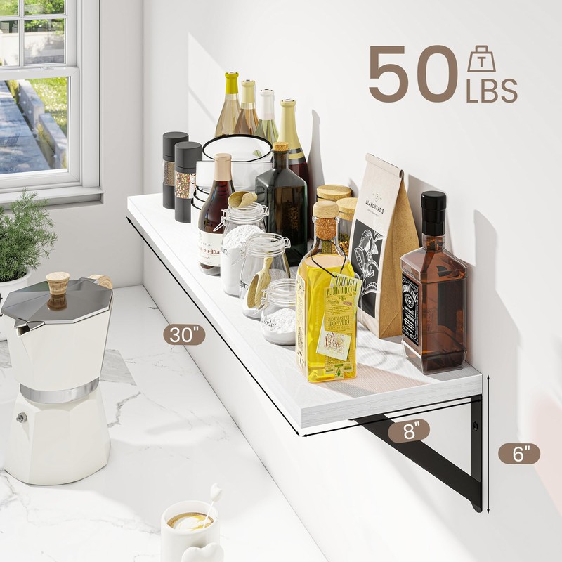 - Large with more Storage: With dimensions of 30 W x 8 D inches, these wall shelves offer ample space for storage and display. Whether you're showcasing your favorite books, photos, or decorative items, you'll find plenty of room to keep your essentials organized and within reach.